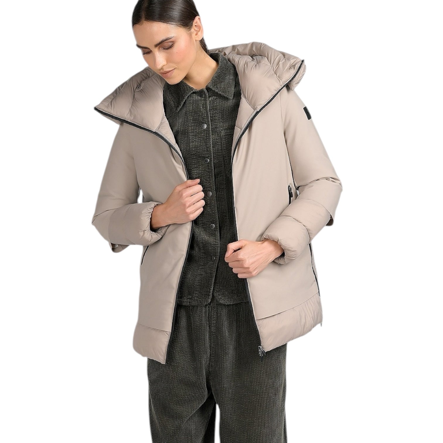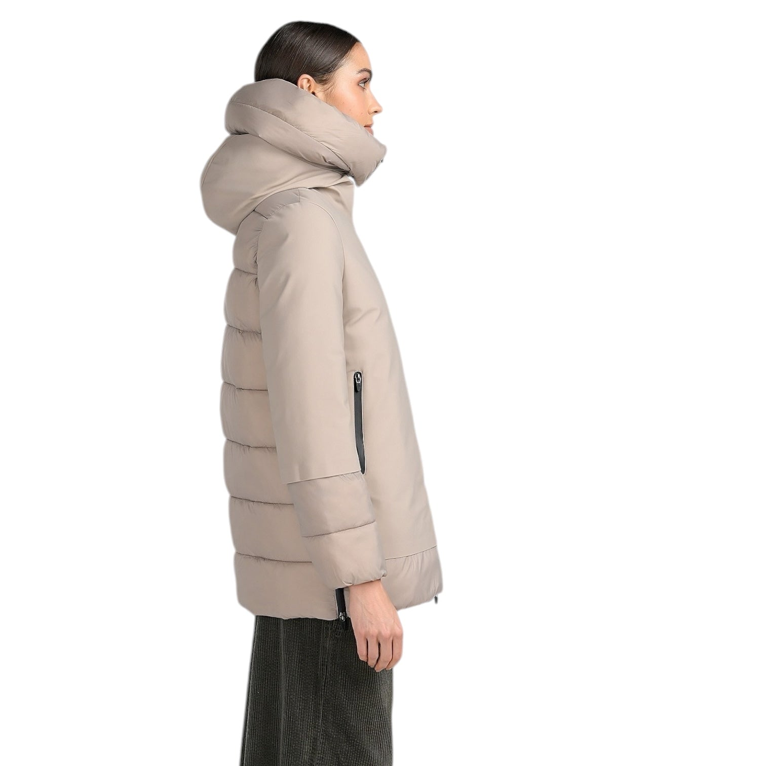 Idrorepellente e Traspirante questo capo vi terrà al caldo durante le giornate più fredde . Il cappuccio è grande e avvolgente, potete indossarlo e tenerlo come collo. L'imbottitura è in poliestere ed ha doppia costruzione: tessuto liscio alternato alle losanghe, in un gioco di tessuti lucido e opaco. Chiusura cerniera gommata frontale, nelle tasche  e sui laterali.